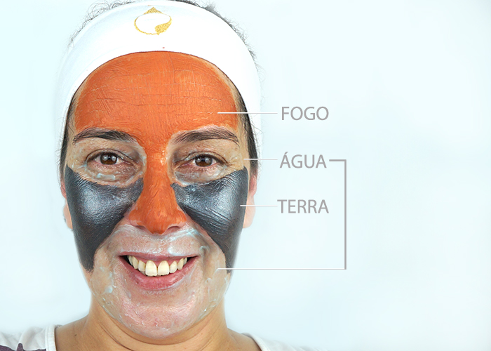 No meu caso optei por aplicar conforme as minhas necessidades primordiais, ou seja, na zona T com delimitação até o nariz, apliquei a Máscara Terra, que possui indicação adstringente. Na região das bochechas eu apliquei a Máscara Fogo com o objetivo de clareamento, já que é uma região que possuo uma certa concentração de efélides e busco uma uniformidade de tom da pele. Na região orbicular dos olhos, na orbicular da boca e na região mentoniana (região do queixo), apliquei a Máscara Água, pensando nos benefícios hidratantes e preenchedor do Ácido Hialurônico, do Colágeno Hidrolisado e do AQP-3 (Aquaporine Active), já que nessas regiões estou com algumas rugas fininhas me incomodando.