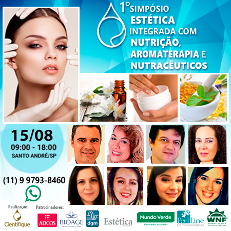 O 1.º SIMPÓSIO ESTÉTICA INTEGRADA COM NUTRIÇÃO, AROMATERAPIA E NUTRACÊUTICOS será realizado no dia 15 de agosto de 2016 na APM – Associação Paulista de Medicina Regional de Santo André no período das 8:00 às 18:00.